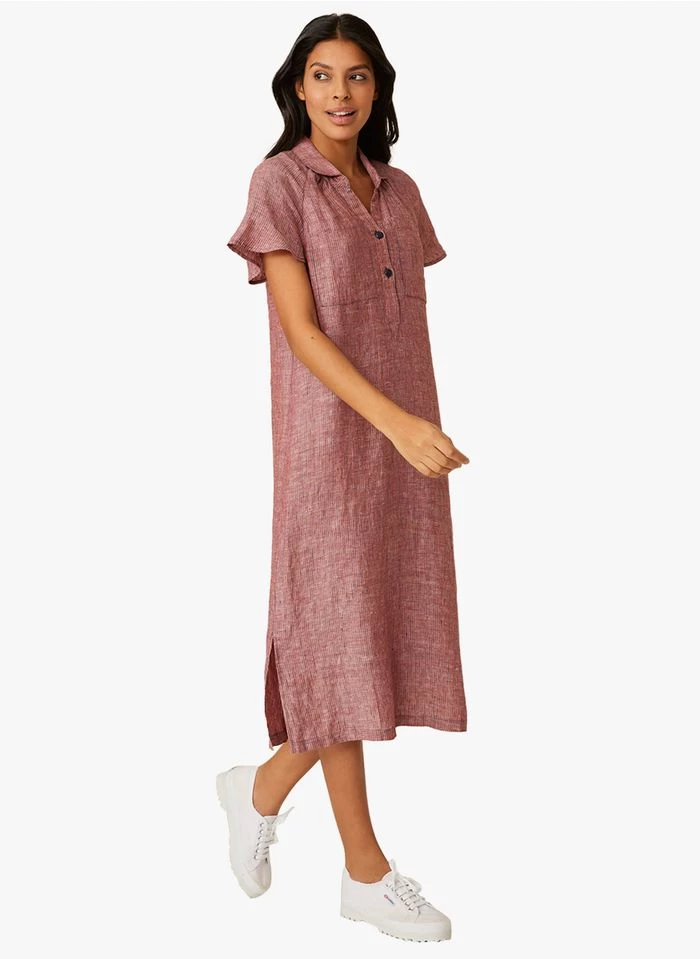 Rechte, linnen jurk met klassieke kraag by Harris Wilson voor Dames.