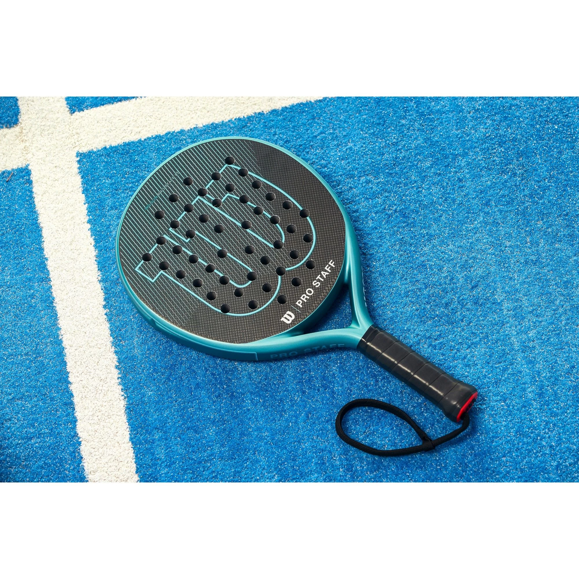 Het Wilson Pro Staff LT V2 padel racket heeft een verlengd handgreep voor de speler die met twee handen spelen. Dit Wilson padel racket heeft een polsband aan de handgreep voor veiligheid en controle tijdens het spelen. Het blad heeft een structuur dat een baleffect geeft aan de bal.